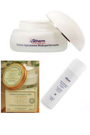 Crema hidratanta multiperformanta de la Ivatherm, 57,12 lei. Gama hidratanta Ivatherm are o compozitie atent aleasa, din care face parte untul de Karite, uleiul de migdale dulci, uleiul de Borago, cu efecte hidratante sinergice, hidroxiceramidele implicate in regularizarea descuamarii, acidul hialuronic cu rol protector si hidratant al pielii. Apa termala Herculane, datorita continutului echilibrat in saruri minerale si oligoelemente (Fe,Cu,Zn,Fl,Mg) indispensabile pielii, potenteaza efectele calmante si antiiritante ale gamei hidratante Ivatherm. Crema hidratanta, cu efect de stralucire de la L'Occitane, 99 lei. Hidrateaza si reda stralucirea si aspectul sanatos al tenului. Imbogatita cu ulei de masline AOC, cu apa de masline si oxigen, acesta crema onctuoasa se absoarbe rapid si protejeaza pielea pe toata durata zilei de agresiunile factorilor externi (stres, poluare, fum). Se aplica dimineata si seara in cantitati mici, pe gat si pe fata curata.