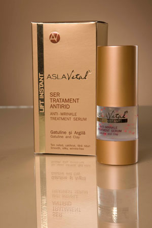 Farmec Cluj-Napoca, cel mai mare producator de cosmetice din România, lanseaza Aslavital Lift Instant, un set format din trei produse revolutionare, care redau rapid tonusul si elasticitatea tenului predispus ridurilor si deshidratarii. Crema lift ultra-activa, Crema lift intensiv contur pentru ochi si buze si Serul tratament antirid au o actiune similara botoxului, dar folosesc ingrediente naturale, nemodificate genetic. Cele trei produse din gama sunt disponibile in ambalaje de 15 ml pentru Crema lift intensiv contur ochi si buze si Serul tratament antirid si 50 ml pentru Crema lift ultra-activa. Preturile lor sunt de 17,20 lei pentru Crema lift intensiv contur ochi si buze, 25,70 lei pentru Crema lift ultra-activa si 22,85 lei pentru Serul tratament antirid.
