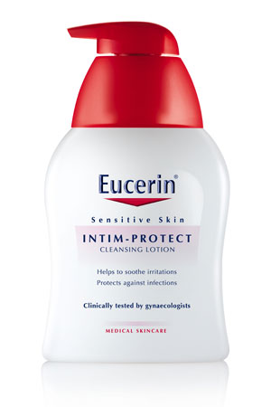 Eucerin® Intim Protect Cleansing Lotion - 250 ml, 34 lei. Imbogatit cu substante atent selectionate precum acidul lactic ce confera umiditatea naturala florei vaginale si uleiul de bisabolol, un extras din musetel cunoscut pentru calitatile sale anti-inflamatoare, lotiunea Eucerin® curata delicat, calmeaza iritatiile, asigura pH-ul zonei intime si nu contine substante alcaline si coloranti. Eucerin® Intim-Protect Cleansing Lotion este produsul de curatare care ajuta la tratarea iritatiilor intr-un mod sigur, testat dermatologic.