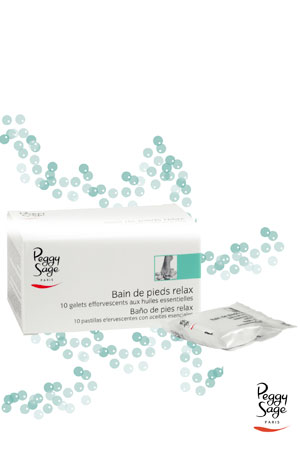 Pentru stresul si oboseala picioarelor, Peggy Sage a creat pastilele de baie relaxanta pentru picioare. Uleiurile esentiale continute de aceste pastile combat transpiratia si purifica pielea picioarelor improspatand-o. Se utilizeaza foarte usor: se dizolva o pastila intr-un bazin cu apa calduta timp de 5-10 min, apoi se lasa sa actioneze asupra picioarelor. Aceasta pauza de destindere este benefica picioarelor obosite sau umflate. Pret: 50,77 lei.