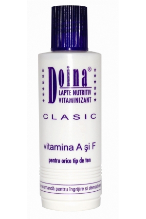 Unul din sase demachiante vandute in Romania este Lapte Doina de la Farmec Cluj-Napoca! Proprietatile produsului il recomanda pentru nu mai putin de 12 utilizari diferite, atat pentru ten, cat si pentru pielea corpului. Compozitia bogata in vitaminele A si F face din laptele Doina o alegere potrivita pentru curatarea si vitaminizarea tenului, intensificarea bronzului, realizarea mastilor nutritive, in combinatie cu argila sau fructe, hidratarea pielii uscate sau chiar a pielii sensibile a copiilor. Este tipul de produs care se regaseste printre bagajele de vacanta, atat de mic cat sa nu ocupe mult spatiu si atat de eficient incat sa fie util si ca demachiant si ca lapte pentru masaj sau emulsie calmanta dupa plaja. Laptele nutritiv Doina este disponibil in cele trei variante ale sale, Clasic, Pure & Soft si Antistres in flacoane de 200 ml, la pretul recomandat de 6,71 lei.