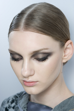 Twilight Decadence - continuare Tema colectiei Valentino a fost cea a „mostenitoarei tinere si frumoase”, iar clarobscurul a fost evidentiat prin presararea de sclipici la baza pleoapei superioare si in coltul interior al ochiului, acesta imbinandu-se unitar cu fardul de pleoape inchis si estompat si cu buzele lucioase, de culoarea pielii. Magia miezului noptii a reaparut ca element cheie la Versace, unde scantei de un albastru stralucitor au electrizat coltul interior al unor ochi alungiti, machiati cu nuante inchise, fumurii si la Roberto Cavalli, unde scaparari metalice impodobeau colturile interioare ale ochilor. La Loewe explozia de stralucire din centrul pleoapei a creat luminozitate pentru ochii machiati in nuante inchise; iar la Anna Sui, personajul-central, inspirat din Belle Epoque/Toulouse Lautrec a stralucit prin pleoape lucioase si licaririle ce au incojurat ochii.