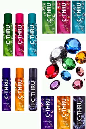 C-THRU deodorant si apa de toaleta disponibile in 6 noi variante: Aquamarine: Puritatea si fascinatia apei Amethyst: Vitalitate si feminitate Ruby: Noblete si pasiune Topaz: Energia vie a focului Emerald: Scantei de lumina Black Diamond: Dragoste pentru eternitate