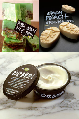 Produse: Lush 1. Each Peach ulei solid detoxifiant pentru masaj anticelulitic cu citrice (portocale dulci, mandarine, grepfruit) si mango, 65g, 27.80 RON 2. Extra Virgin sapun detoxifiant, cu masline, frunze de maslin si ulei de grepfruit, 100 g, 18.80 RON 3. Enzymion crema pentru ten gras cu avocado, lamai verzi, portocale si papaya, 45g, 65.80 RON