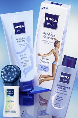 Produse: Nivea 1. Nivea Body - Lotiune-Crema Delicata cu Actiune Tripla, 250 ml, 13.89 RON 2. Nivea Good-bye Cellulite, anticelulitic pentru fermitatea pielii, 200 ml, 31.70 RON 3. Nivea Firming - Gel de dus cu dispozitiv pentru masaj, 18.7 RON