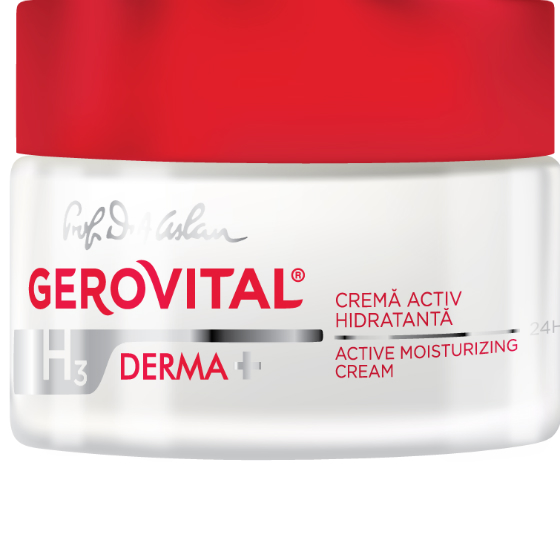 Din aceasta gama de dermatocosmetice iti recomandam Crema activ hidratanta 24h Gerovital H3 Derma+ care actioneaza direct asupra primului strat al pielii datorita combinatiei de acizi grasi esentiali omega. Acestia optimizeaza rezervele dermice de apa prin cresterea continutului de acid hialuronic, iar compusii bogati in aminoacizi din compozitia ei asigura o hidratare de durata si tonifierea tegumentului.