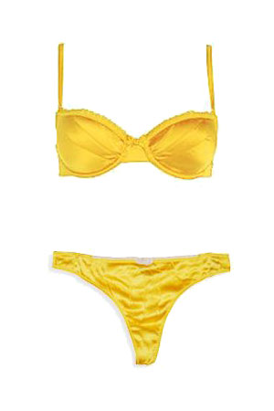 Galbenul este una dintre culorile ce inspira optimism si buna dispozitie.Sutien si slip tanga de la Debenhams, 59,50 lei, respectiv 24,50 lei.
