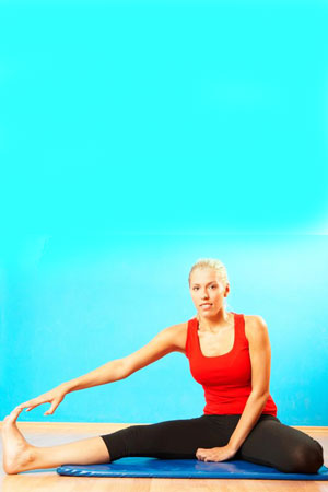 Indoaie piciorul stang sub tine, intinde piciorul drept si atinge cu mana dreapta piciorul drept. Repeta de 15 ori, apoi schimba piciorul.