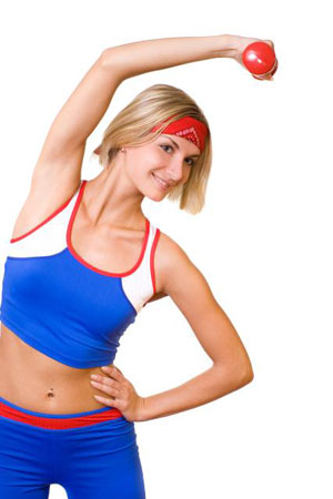 Intinde-te in lateral, cu o mana deasupra capului si cealalta sprijinita pe sold. Optional, poti tine in mana intinsa deasupra capului o greutate usoara de 1 kg, aceasta avand rolul de a spori dificultatea exercitiului. Repeta de 15 ori, pentru fiecare mana.
