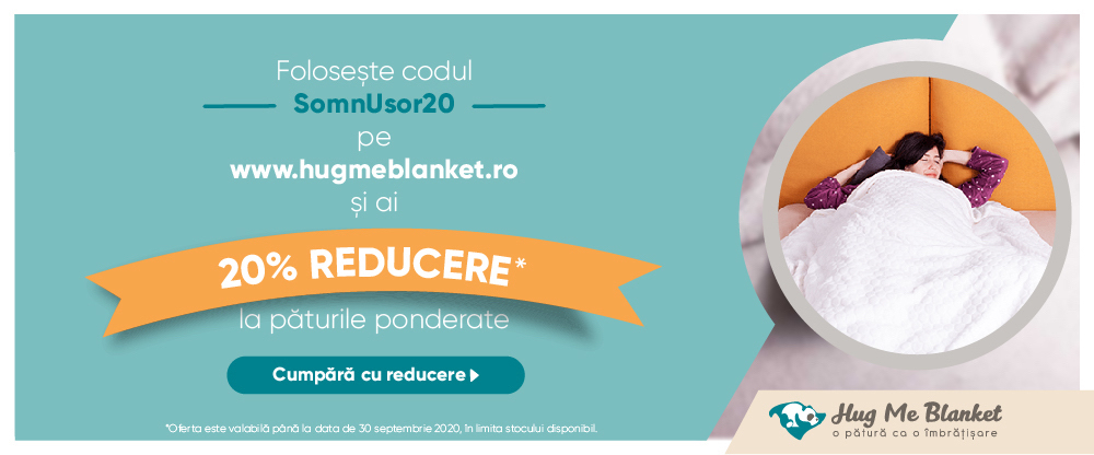 Până pe 30 septembrie, profită de promoția Hug Me Blanket, care îți oferă 20% reducere la orice comandă. Tot ce trebuie să faci este să adaugi codul „SomnUsor20” în căsuța de „cod cupon” înainte să finalizezi comanda.