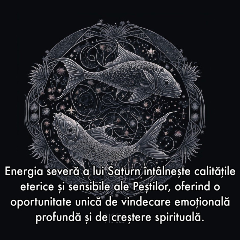 Peștii, ultimul semn al zodiacului, sunt asociați cu spiritualitatea, intuiția și empatia. Aceștia reprezintă vastul ocean al subconștientului colectiv, acolo unde se află visurile, imaginația și toate emoțiile ascunse. Cu Saturn retrograd în Pești, energia severă a lui Saturn întâlnește calitățile eterice și sensibile ale Peștilor, oferind o oportunitate unică de vindecare emoțională profundă și de creștere spirituală.
