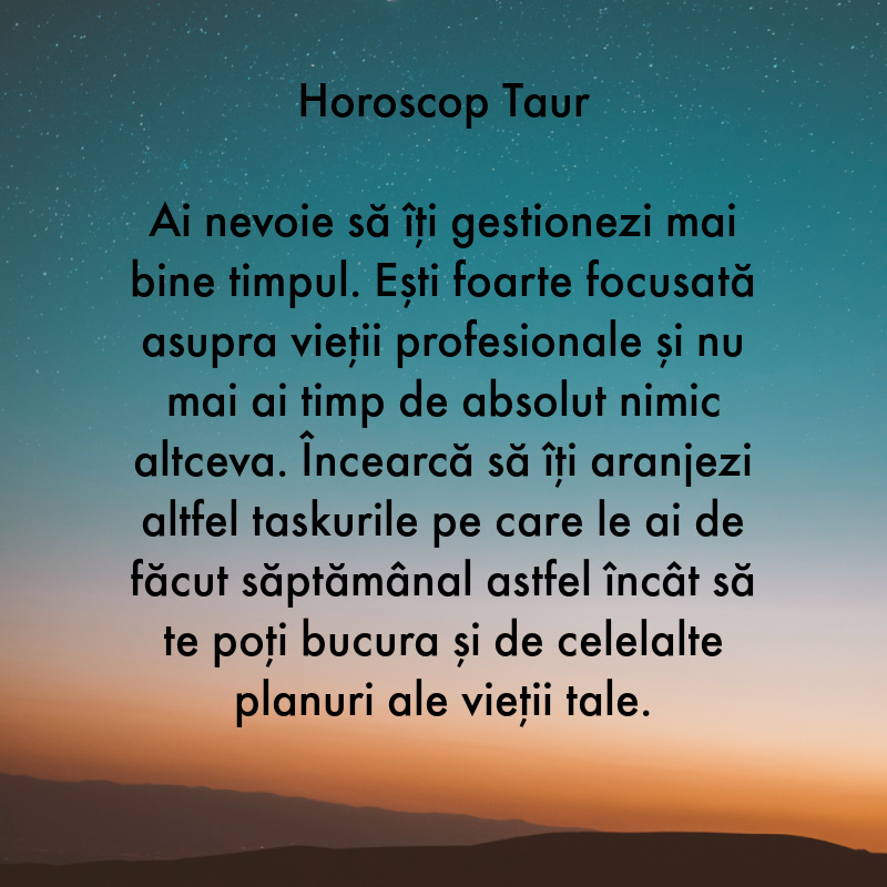 Ai nevoie să îți gestionezi mai bine timpul. Ești foarte focusată asupra vieții profesionale și nu mai ai timp de absolut nimic altceva. Încearcă să îți aranjezi altfel taskurile pe care le ai de făcut săptămânal astfel încât să te poți bucura și de celelalte planuri ale vieții tale.
