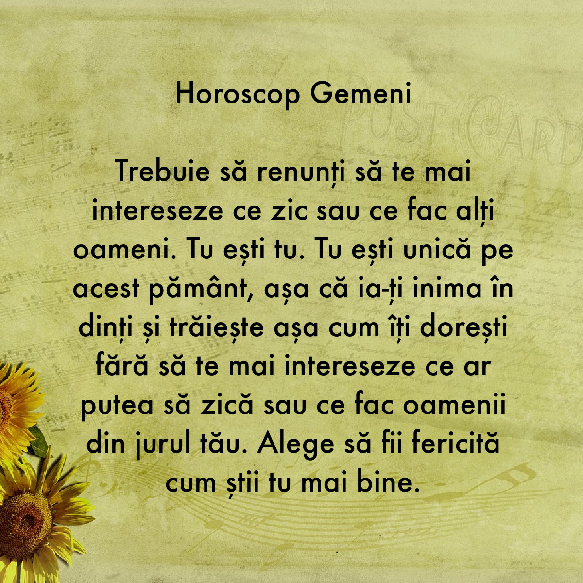 Universul are un sfat pentru tine în această perioadă: înainte de a îți păsa de altcineva, învață să îți pese de tine. Nu te mai concentra pe ce spun, fac sau simt oamenii din jurul tău. Îndreaptă-ți atenția asupra propriei persoane și alege fericirea pentru tine.