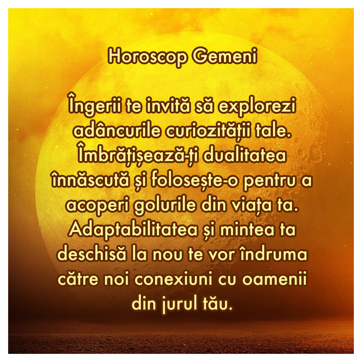 Universul îți trimite aventură, bucurii și fericire în această perioadă. Optimismul tău nemărginit și setea pentru cunoaștere te vor conduce către teritorii neexplorate. Pune-ți centura deoarece urmează o călătorie pe cinste pe care nu o vei uita prea ușor.