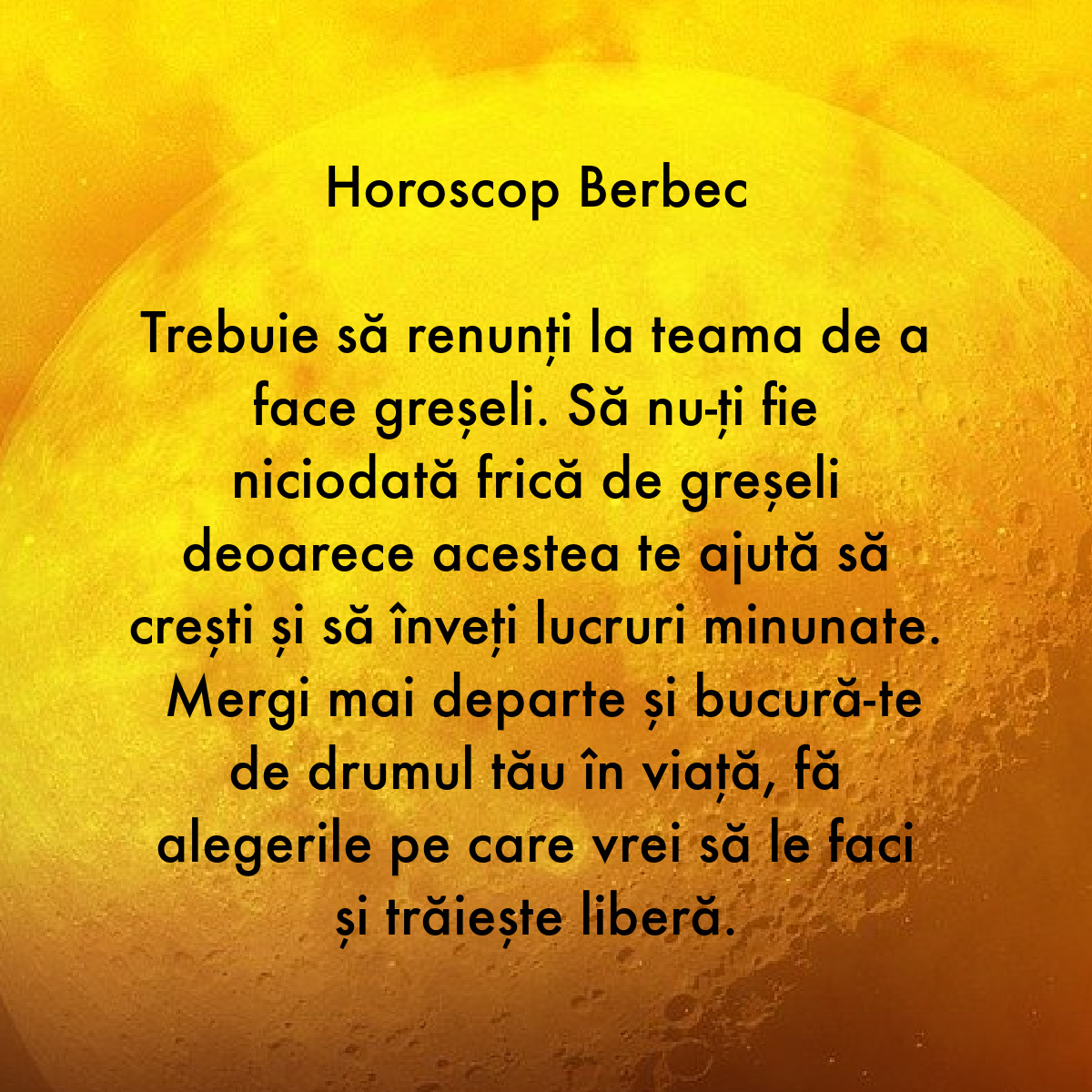 Trebuie să renunți la teama de a face greșeli. Să nu-ți fie niciodată frică de greșeli deoarece acestea te ajută să crești și să înveți lucruri minunate. Mergi mai departe și bucură-te de drumul tău în viață, fă alegerile pe care vrei să le faci și trăiește liberă.