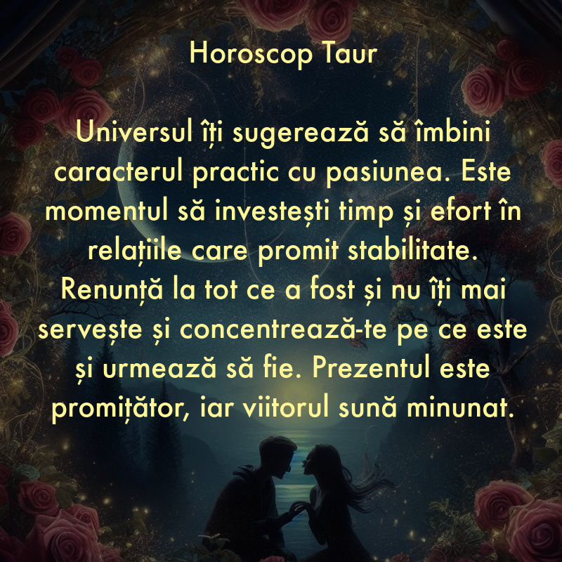 Cosmosul te îndeamnă să îmbrățișezi o abordare mai tradițională și mai structurată a iubirii. Ia în considerare aspectele practice ale relațiilor, oferind în același timp spațiu astfel încât perspectivele tale unice și inovatoare să prospere.