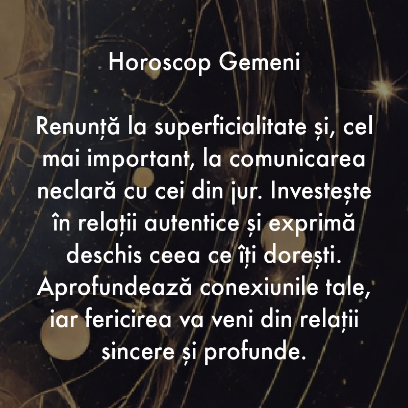 Renunță la superficialitate și, cel mai important, la comunicarea neclară cu cei din jur. Investește în relații autentice și exprimă deschis ceea ce îți dorești. Aprofundează conexiunile tale, iar fericirea va veni din relații sincere și profunde.