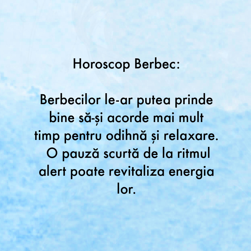 Berbecilor le-ar putea prinde bine să-și acorde mai mult timp pentru odihnă și relaxare. O pauză scurtă de la ritmul alert poate revitaliza energia lor.