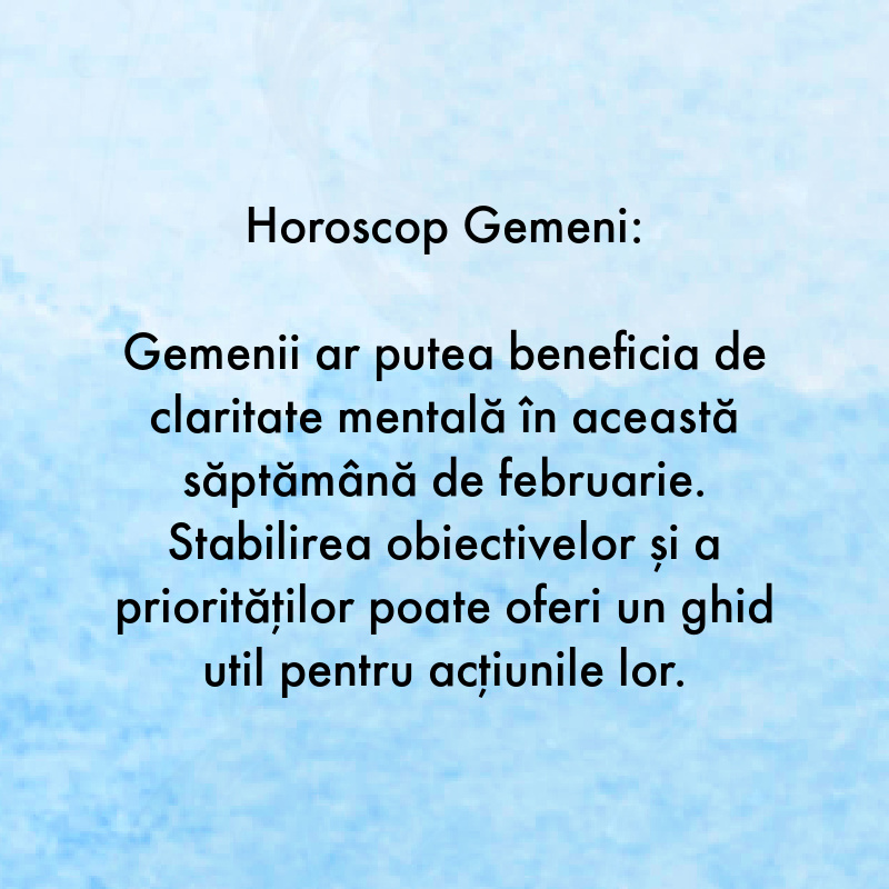 Gemenii ar putea beneficia de claritate mentală în această săptămână de februarie. Stabilirea obiectivelor și a priorităților poate oferi un ghid util pentru acțiunile lor.