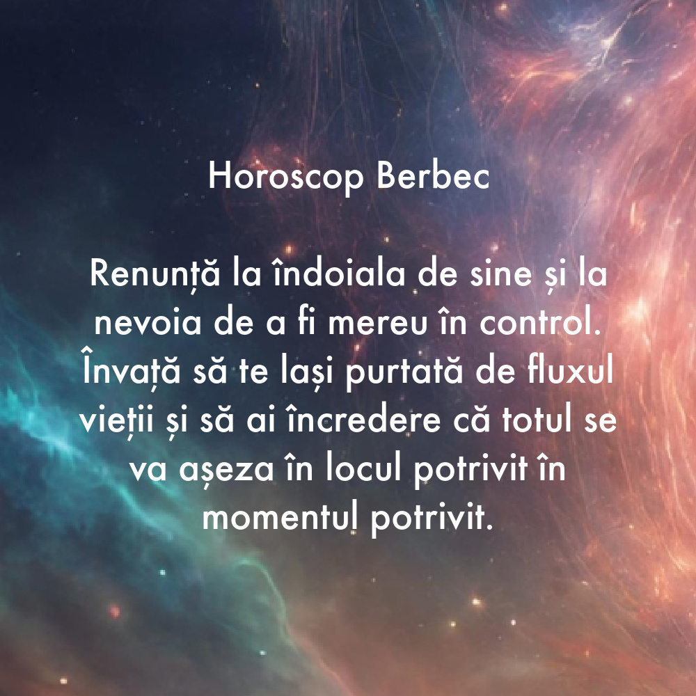 Renunță la îndoiala de sine și la nevoia de a fi mereu în control. Învață să te lași purtată de fluxul vieții și să ai încredere că totul se va așeza în locul potrivit în momentul potrivit.