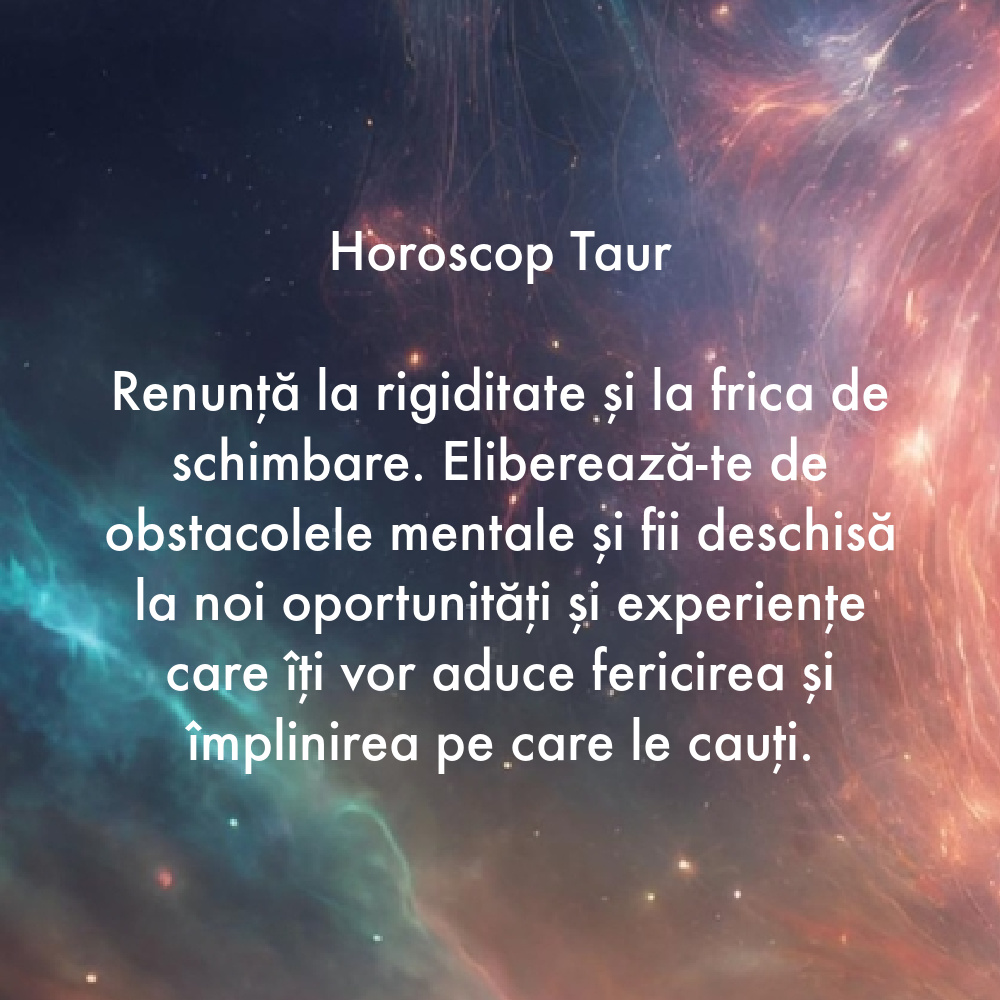 Renunță la rigiditate și la frica de schimbare. Eliberează-te de obstacolele mentale și fii deschisă la noi oportunități și experiențe care îți vor aduce fericirea și împlinirea pe care le cauți.