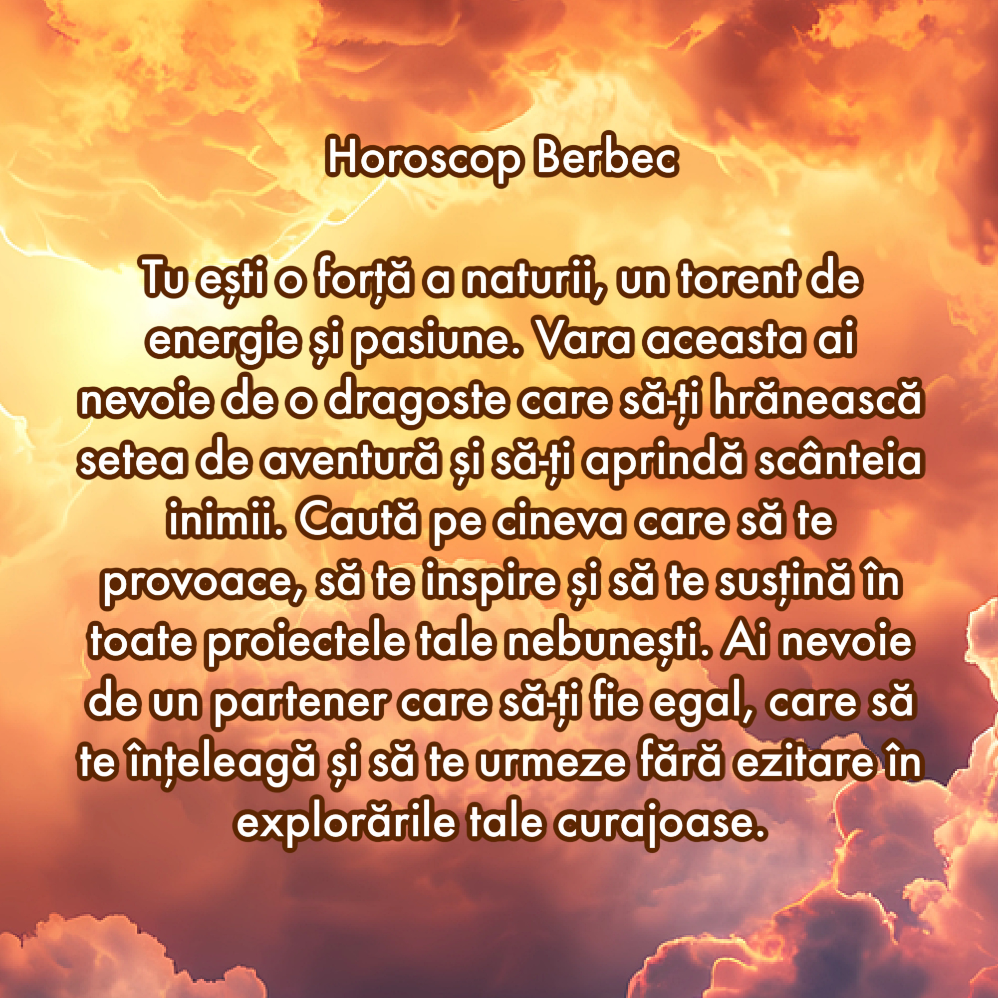 Tu ești o forță a naturii, un torent de energie și pasiune. Vara aceasta ai nevoie de o dragoste care să-ți hrănească setea de aventură și să-ți aprindă scânteia inimii. Caută pe cineva care să te provoace, să te inspire și să te susțină în toate proiectele tale nebunești. Ai nevoie de un partener care să-ți fie egal, care să te înțeleagă și să te urmeze fără ezitare în explorările tale curajoase.