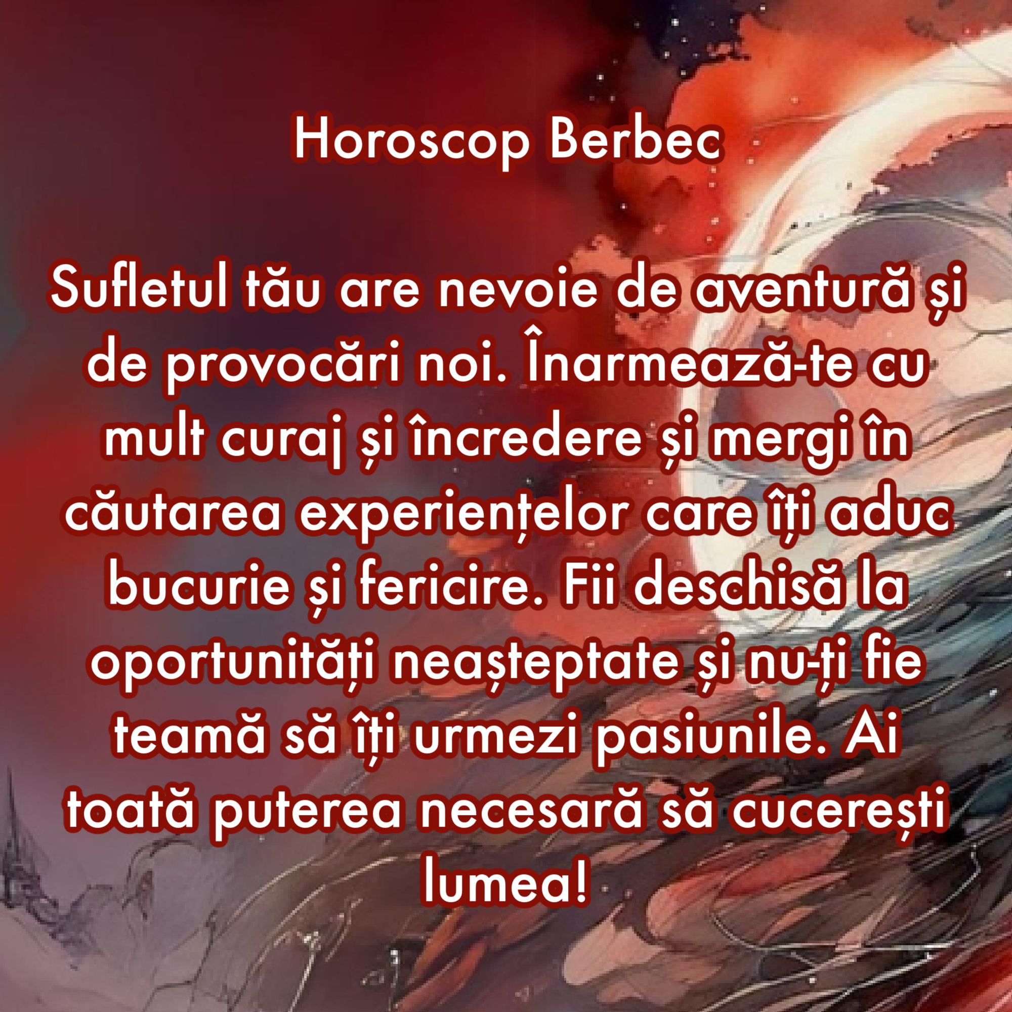 Sufletul tău are nevoie de aventură și de provocări noi. Înarmează-te cu mult curaj și încredere și mergi în căutarea experiențelor care îți aduc bucurie și fericire. Fii deschisă la oportunități neașteptate și nu-ți fie teamă să îți urmezi pasiunile. Ai toată puterea necesară să cucerești lumea!