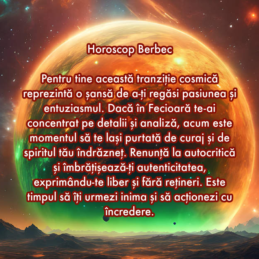 Pentru tine această tranziție cosmică reprezintă o șansă de a-ți regăsi pasiunea și entuziasmul. Dacă în Fecioară te-ai concentrat pe detalii și analiză, acum este momentul să te lași purtată de curaj și de spiritul tău îndrăzneț. Renunță la autocritică și îmbrățișează-ți autenticitatea, exprimându-te liber și fără rețineri. Este timpul să îți urmezi inima și să acționezi cu încredere.