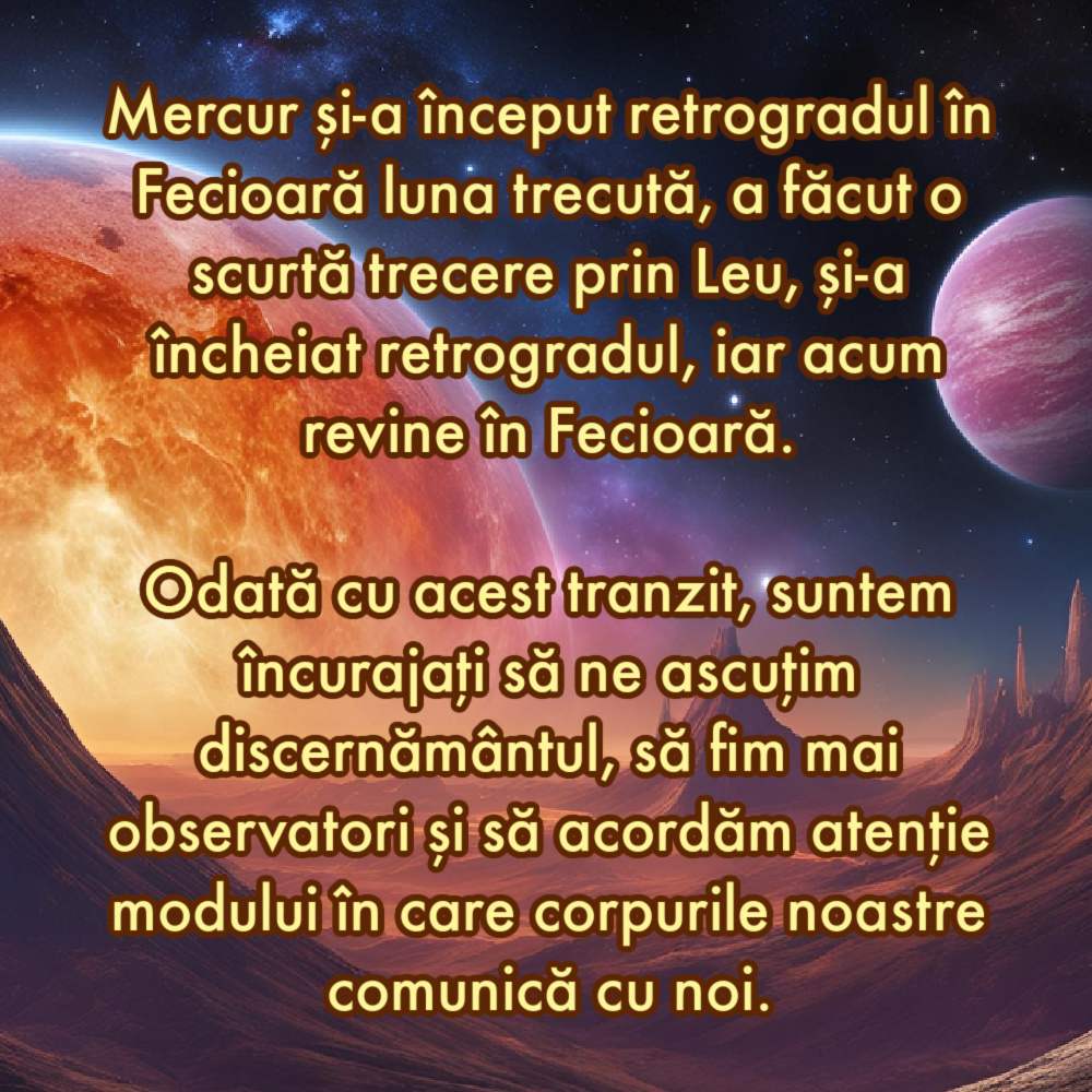 Mercur și-a început retrogradul în Fecioară luna trecută, a făcut o scurtă trecere prin Leu, și-a încheiat retrogradul, iar acum revine în Fecioară.