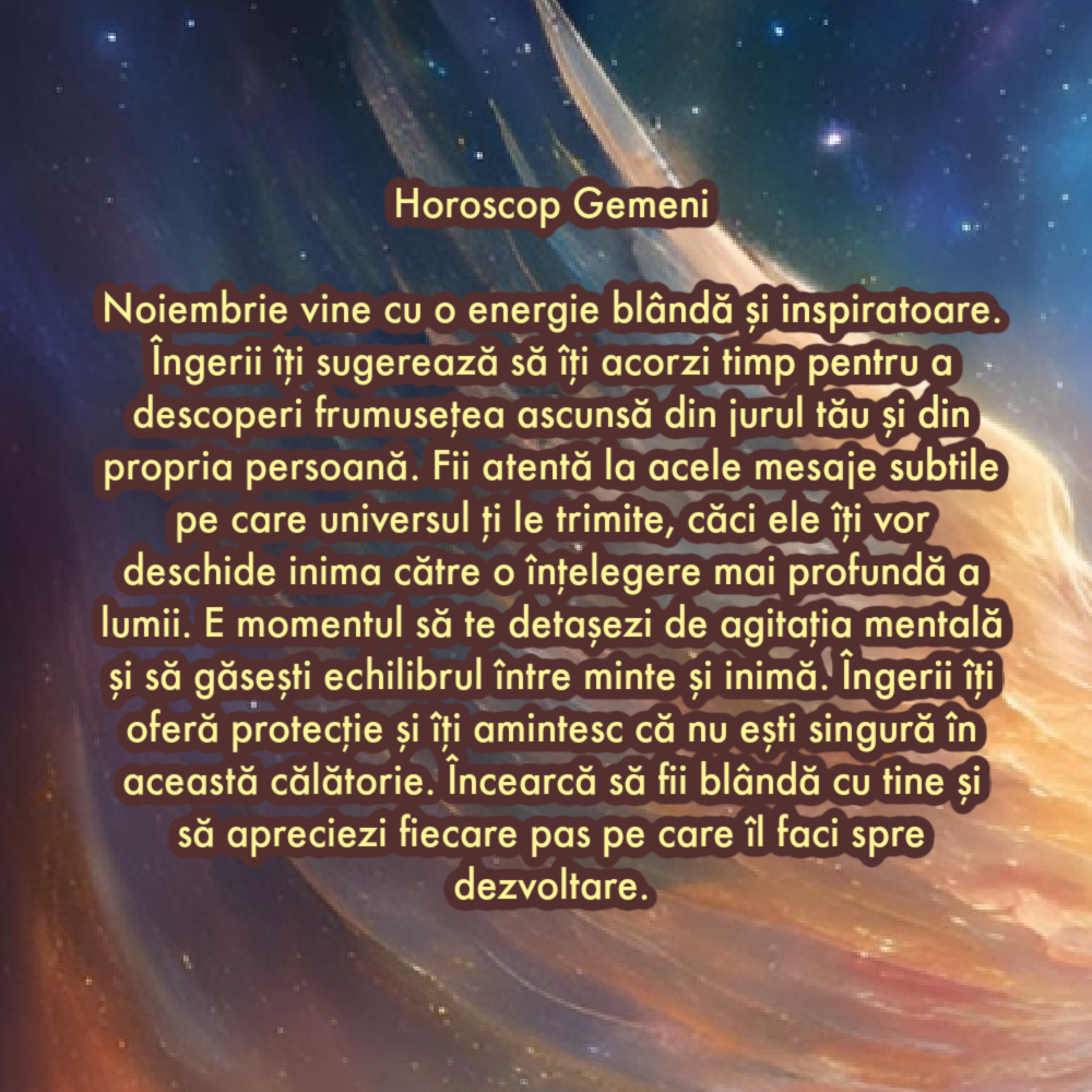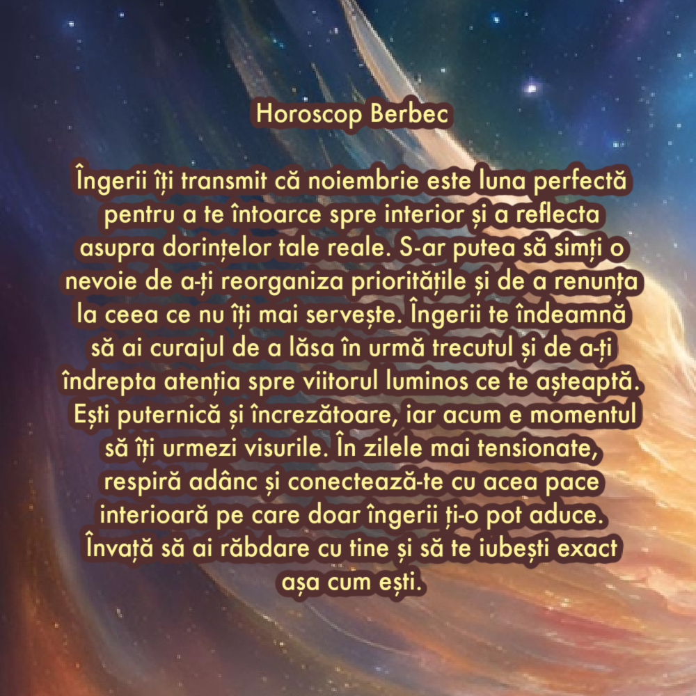 În continuare, descoperă mesajul îngerilor pentru noiembrie, adaptat pentru fiecare zodie. Lasă-te purtată de înțelepciunea și dragostea lor și primește-le ghidarea cu deschidere și încredere.