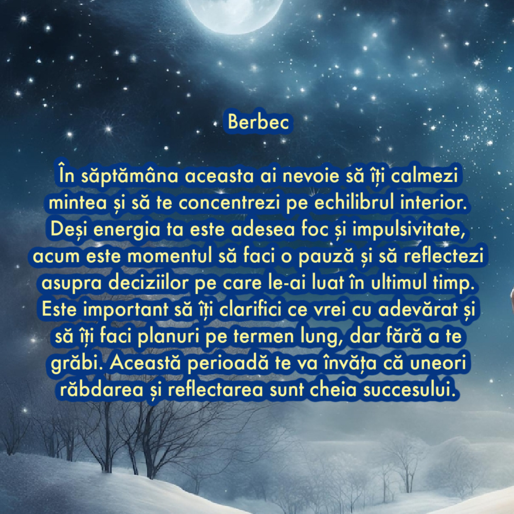 Fiecare zodie are propriile nevoi și priorități în această săptămână, iar astrele ne oferă oportunități unice pentru a face pași importanți în direcția dorințelor noastre cele mai profunde. Este timpul să ne ascultăm intuiția, să renunțăm la ceea ce nu mai ne mai servește și să ne deschidem pentru ce este de venit. În funcție de semnul zodiacal, vei resimți o nevoie mai mare de introspecție, de comunicare sau de reconectare cu cei dragi. Așadar, săptămâna aceasta ne invită să ne pregătim nu doar pentru sărbători, dar și pentru o nouă eră a transformării personale.
