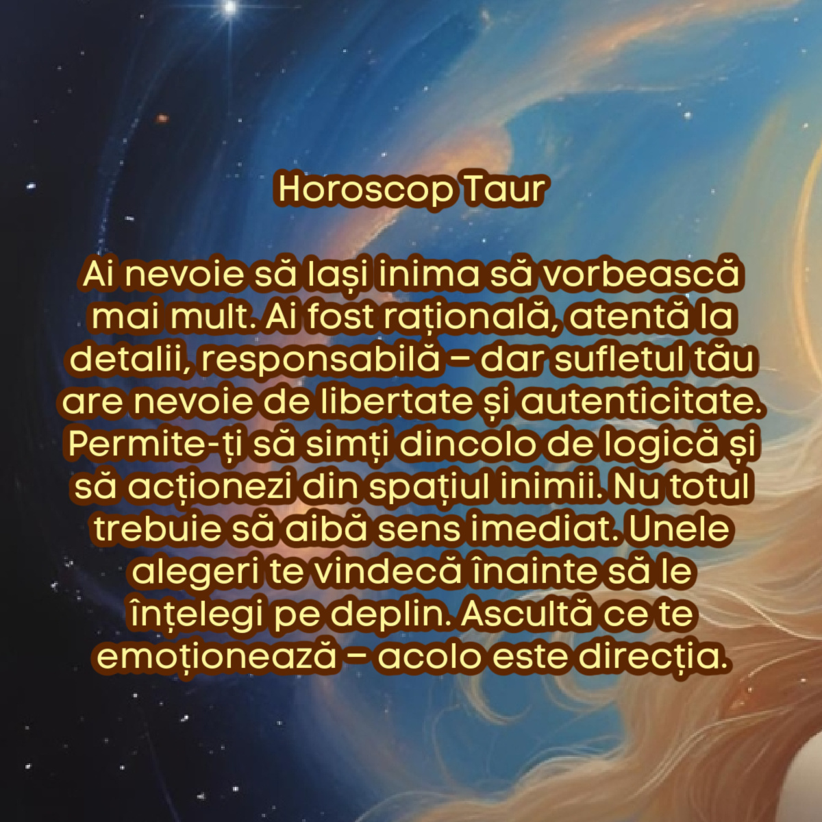 Acest horoscop nu îți spune ce se va întâmpla, ci te ajută să înțelegi de ce ai nevoie ca să crești, să te echilibrezi și să îți onorezi sufletul. E o invitație la introspecție, la grijă de sine și la conștientizare. Cuvintele sunt doar oglinzi – tu ești cea care simte ce rezonează cu adevărat. Așadar, respiră adânc, citește cu inimă deschisă și primește ceea ce îți aparține.