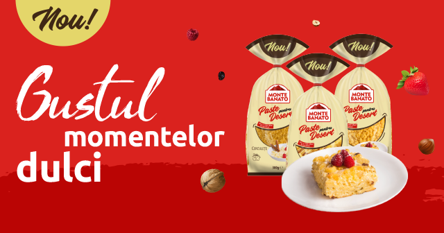 Dacă v-am făcut deja poftă, o să vă placă acest articol! Pentru a păstra această tradiție a deserturilor rapide, dar sănătoase și gustoase, Monte Banato a lansat trei sortimente de paste speciale pentru desert, realizate dintr-un mix inedit de ingrediente care păstrează aceleași valori nutritive, cu trei forme perfecte pentru toate rețetele de paste dulci - bucle, cerculețe și melcișori.