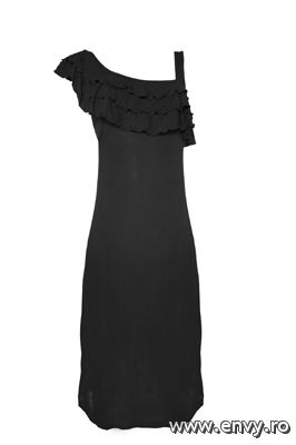 Volanele si asimetriile formeaza o combinatie atragatoare in tendinte. Propunere: rochie asimetrica