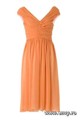 Rochia este confectionata din voal si are o croiala usor evazata. Corsetul este drapat simplu si fusta este usor incretita. Rochia poate fi achizitionata de la Mango, pret 565 lei.