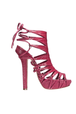 Cu siguranta, aceste sandale cu toc de 15 centimetri nu sunt pentru oricine! Insa pielea de crocodil, din care este realizat finisajul, este o sursa de inspiratie pentru vara asta: se poarta imprimeurile de acest gen, iar fuchsia este una dintre culorile preferate ale sezonului.