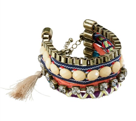 Bratara din metal, textil si pietricele din sticla
