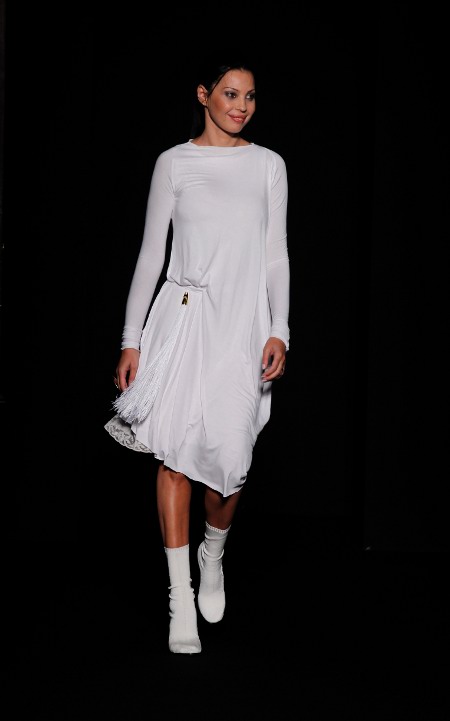 Pe podium au plutit siluete feminine, linii fluide, franjuri delicate si printuri-accent. Combinatiile de matase si dantela, decupaje si suprapuneri, dar mai ales penajul delicat si stropii revigoranti de culoare au deschis aripile unei colectii speciale intr-o cromatica aparte.