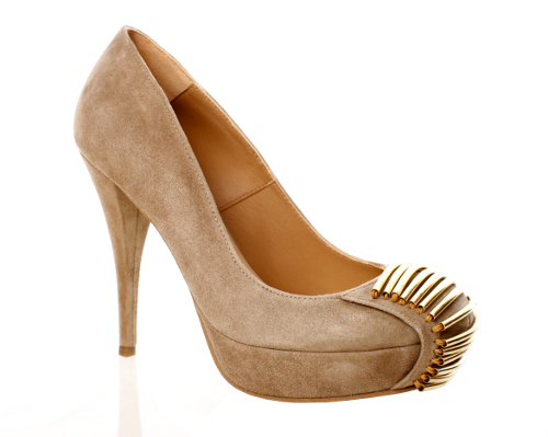 Avand ca inspiratie initiala decoratiunile baroce, dar si modalitatea de figurare a miscarii din sculptura futurista, acest toc personalizat a fost realizat cu indrumarea si sprijinul lui Aurel Ierulescu, un renumit sculptor roman. Obiectul care acopera tocul este realizat din cupru acoperit galvanic cu nichel negru sau aur, in functie de necesitatile de decorare. Aceasta carcasa metalica ce imbraca tocul si este fixata pe platou creeaza o platforma aparenta, oferind pantofului o alta valoare estetica. Volumul acestor platforme metalice, intens vibrat, sugereaza miscarea, viteza, acceleratia, asociatii firesti cu zona de incaltaminte.