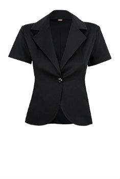 Sacou negru din bumbac cu maneca scurta si decolteu in V.