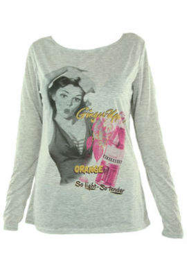 Bluza cu maneca lunga gri cu imprimeu pe piept.