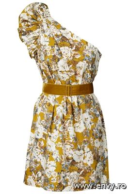 3. Rochie cu trandafiriPentru un cocktail somptuos imbraca o rochie eleganta cu un umar gol si curea in talie.