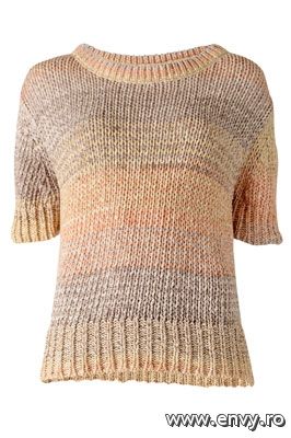 Puloverul are maneci trei sferturi si poate fi suprapus peste o maleta mulata. Se gaseste in magazinele Mango la pretul de 199 lei.
