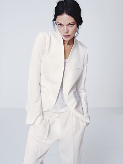 Costumul alb cu croiala bine definita este o piesa esentiala de stil; purtat cu pantofi stil teddyboy si asortat cu un maiou din jerseu pe dedesubt, look-ul capata un aspect indulcit.