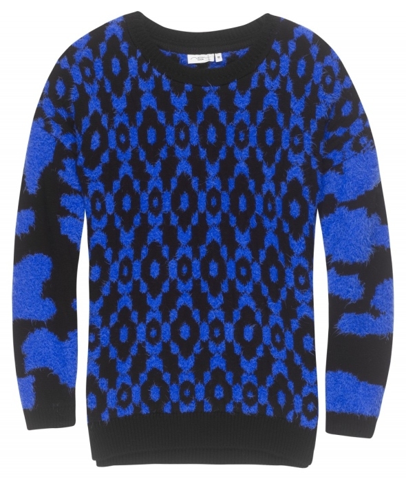 O varietate de imprimeuri caracterizeaza majoritatea tricotajelor din colectia sezonului rece. Negrul adauga un plus de contrast si tempereaza nuantele vibrante.