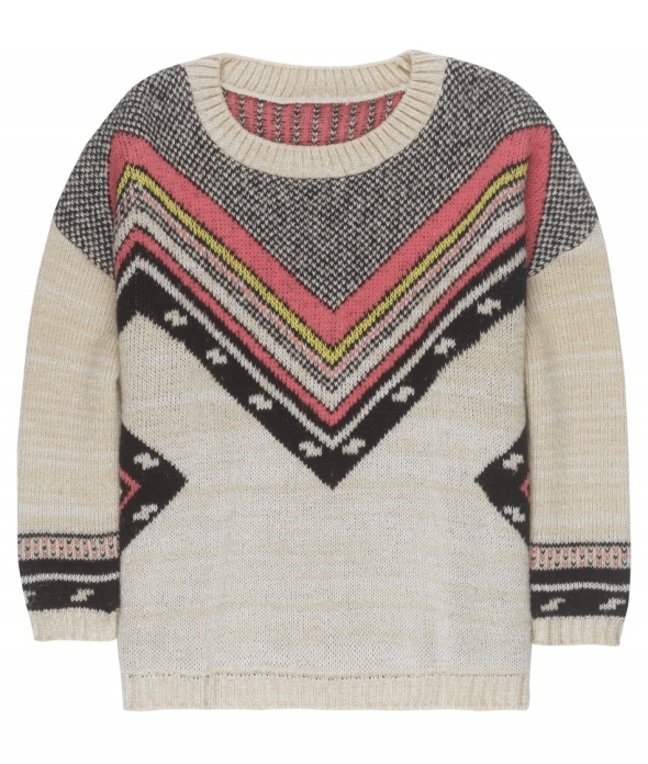 Un pulover supradimensionat cu imprimeu se poate transforma intr-o piesa de rezistenta. Poarta-l cu o pereche de pantaloni de piele negri si botine inalte.