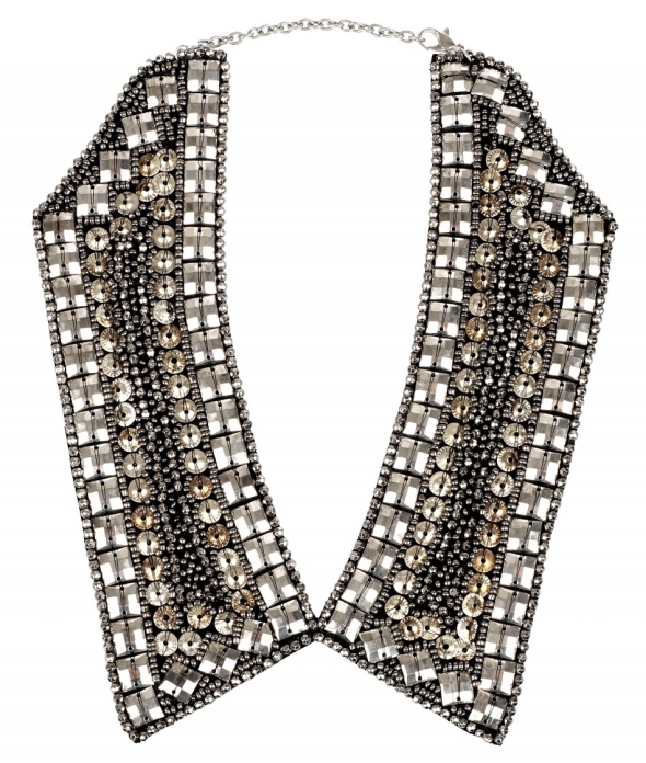Colierele statment tip guler fac furori in materie de accesorii. Acest model se potriveste seara la o tinuta simpla.