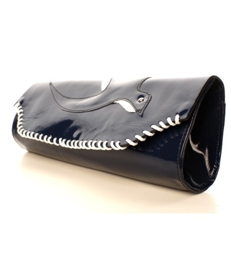 Plic bleumarin maxi din piele naturala lacuita cu design foarte interesant care se inchide cu clapeta prinsa cu magneti.