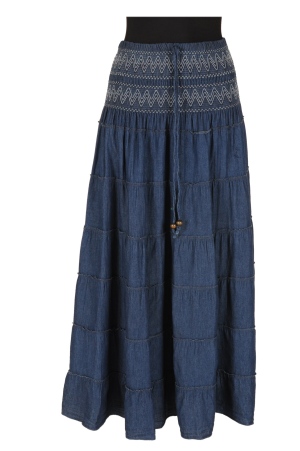 Modelul este lejer cu volane cusute incretit. Betelie lata elastica in talie cu broderie aplicata si snur reglabil. Model colectia primavara vara 2012, fuste casual sau pentru o tinuta de vacanta ce confera confort si sarm. Lungime 95 cm.
