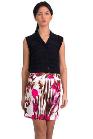 4. Fusta scurta cu flori ciclamen
